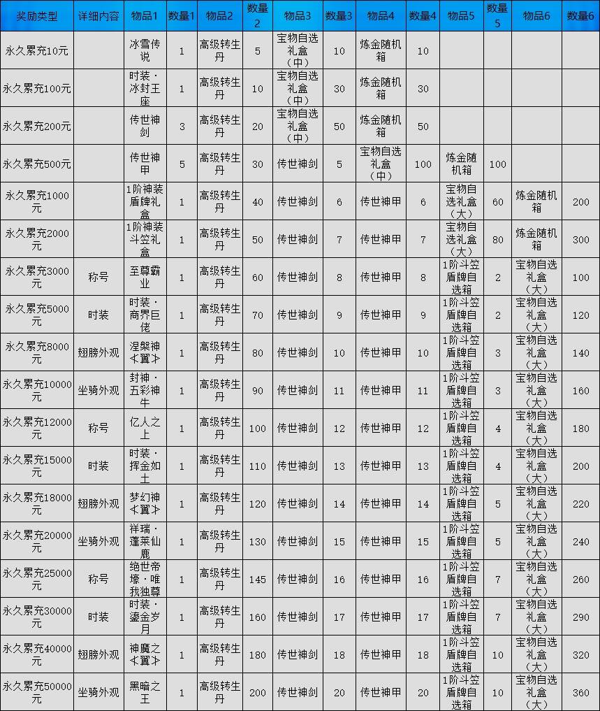 2.活动仅计算玩家的真实充值金额,游戏内红包/充值卡等均不计算在内