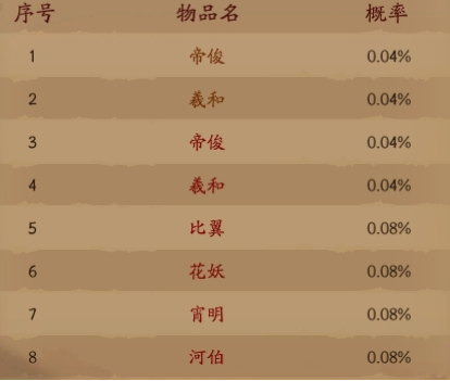 5y2y《仙神之怒》概率公示!