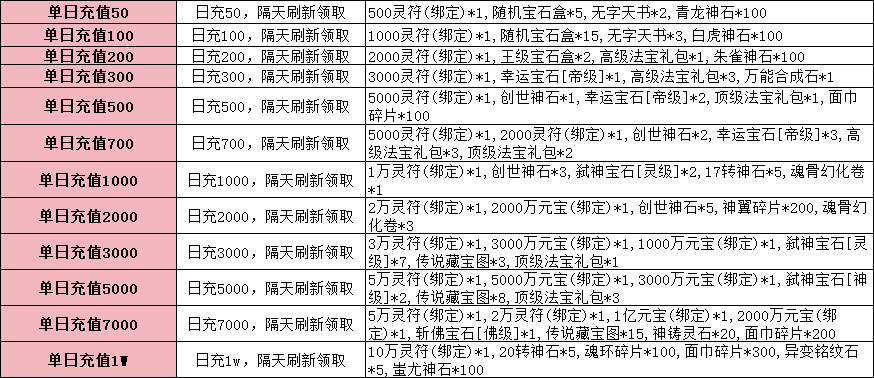 3、玩家单日所充额度次日重置,不可和其他天数额度累积计算;