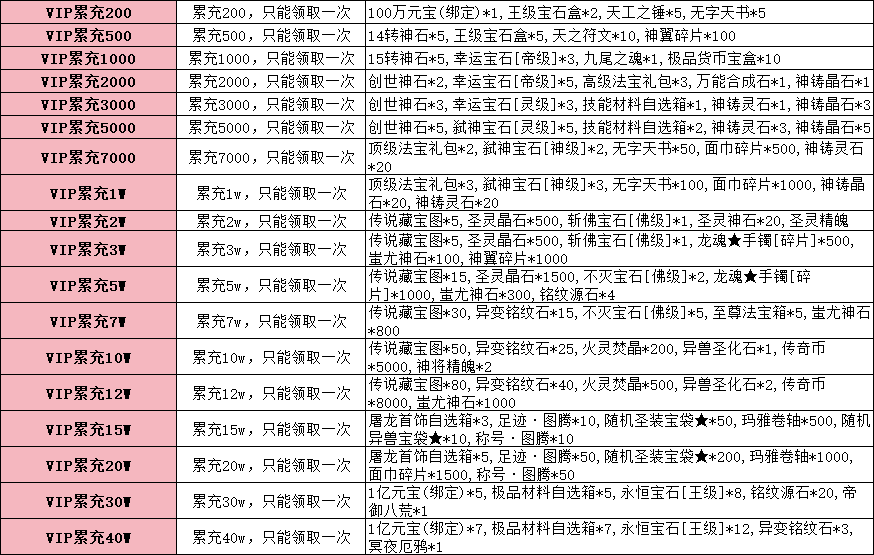 1、针对开服28天后(含28天),单个角色真实累充5k以上的用户(不包含转区充值),单日累充2k元即可参与此活动;