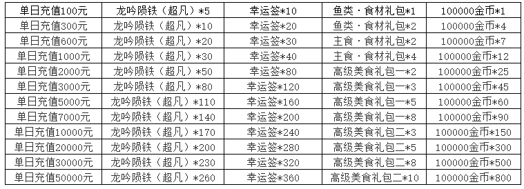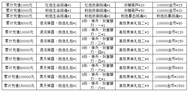 1.活动期间历史累计充值达到固定档位即可领取奖励