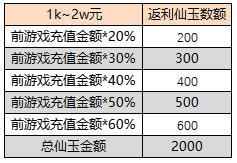 1000元以上用户可拿高手礼包+专属礼包+仙玉百分比返利