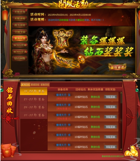 活动内容:活动时间内回收装备可获得大量钻石奖励