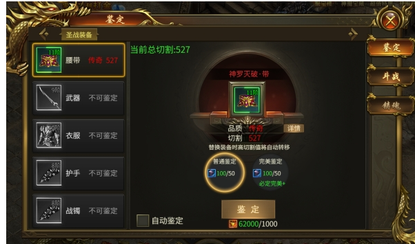 2、可分为普通和完美鉴定,需要消耗鉴定石以及元宝或者钻石。