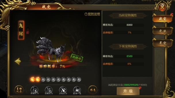 2、消耗元宝可以对宠物进行升级可以提升属性,