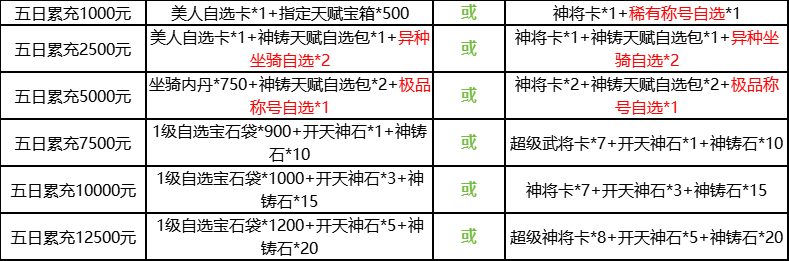 ②. 活动为累积奖励,即五日充值12500元可领取所有奖励,每个档位仅限申请1次
