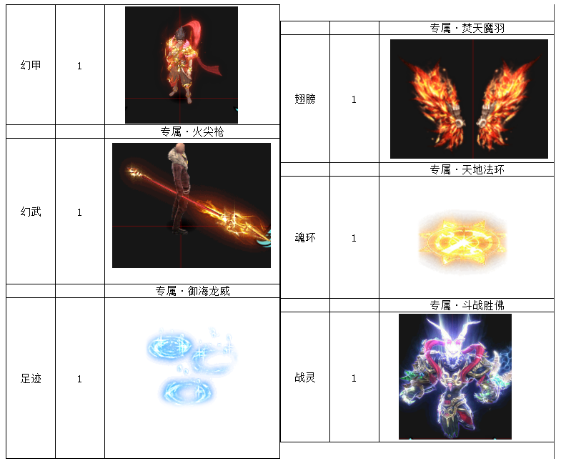 VIP礼包4(累计1000元领取):热血防具自选箱*1,专属水晶*30,1元充值卡*1888,元宝*10000000