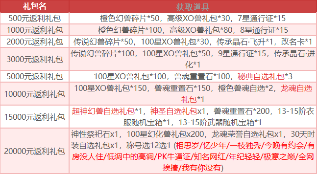 提供(角色名,区服,充值金额,充值日期)找客服领取。