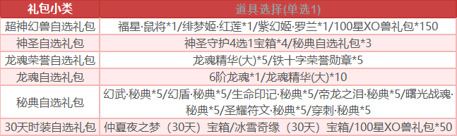 温馨提示:自选礼包为玩家自行在游戏内选择道具,称号为申请时选择,称号发放后无法更换。