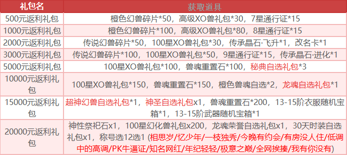 提供(角色名,区服,充值金额,充值日期)找客服领取。