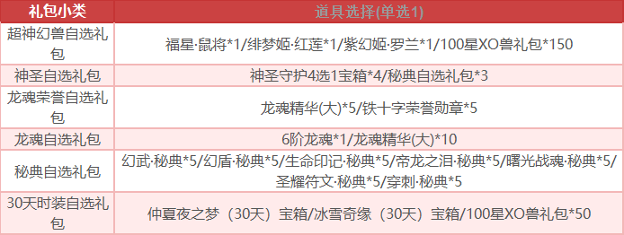 温馨提示:自选礼包为玩家自行在游戏内选择道具,称号为申请时选择,称号发放后无法更换。