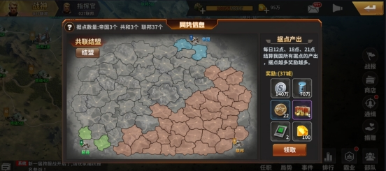 首先介绍一下,王者之师是一款军事策略类游戏,你可以加入共和,帝国,联邦任意一个阵营,在阵营内,你可以和自己阵营的人进行PK,最强第一名可以成为领袖。在国战中,你可以派发部队,去攻城略地,据点越多,我方全员得到的资源也越多。