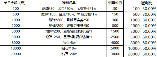 活动内容:玩家单日累充达到指定额度,可获得该金额达到的最高档及以下档位的奖励