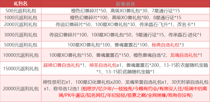 提供(角色名,区服,充值金额,充值日期)找客服领取。