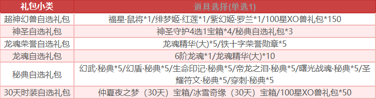 温馨提示:自选礼包为玩家自行在游戏内选择道具,称号为申请时选择,称号发放后无法更换。