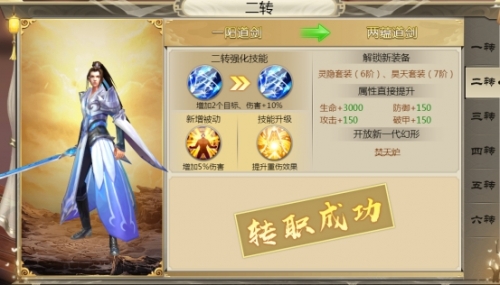 一转完成后并不能够马上进入二转,角色还需要达到130级才能开始二转任务。二转解锁后,新增被动技能,解锁新的装备,开放新一代幻形。